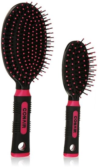 Conair impressions detangle style hair brush 1 brush. Comfort gel handle flexible cushion everyday brushing detangle style ideal for everyday brushing styling ball tipped bristles won t snag or pull hair designed to gently detangle wet or dry hairsoft gel comfort grip handle conforms to the shape of your hand. Set contains one full size and one mid size brush colors may vary brush set may come in pink blue or purple.